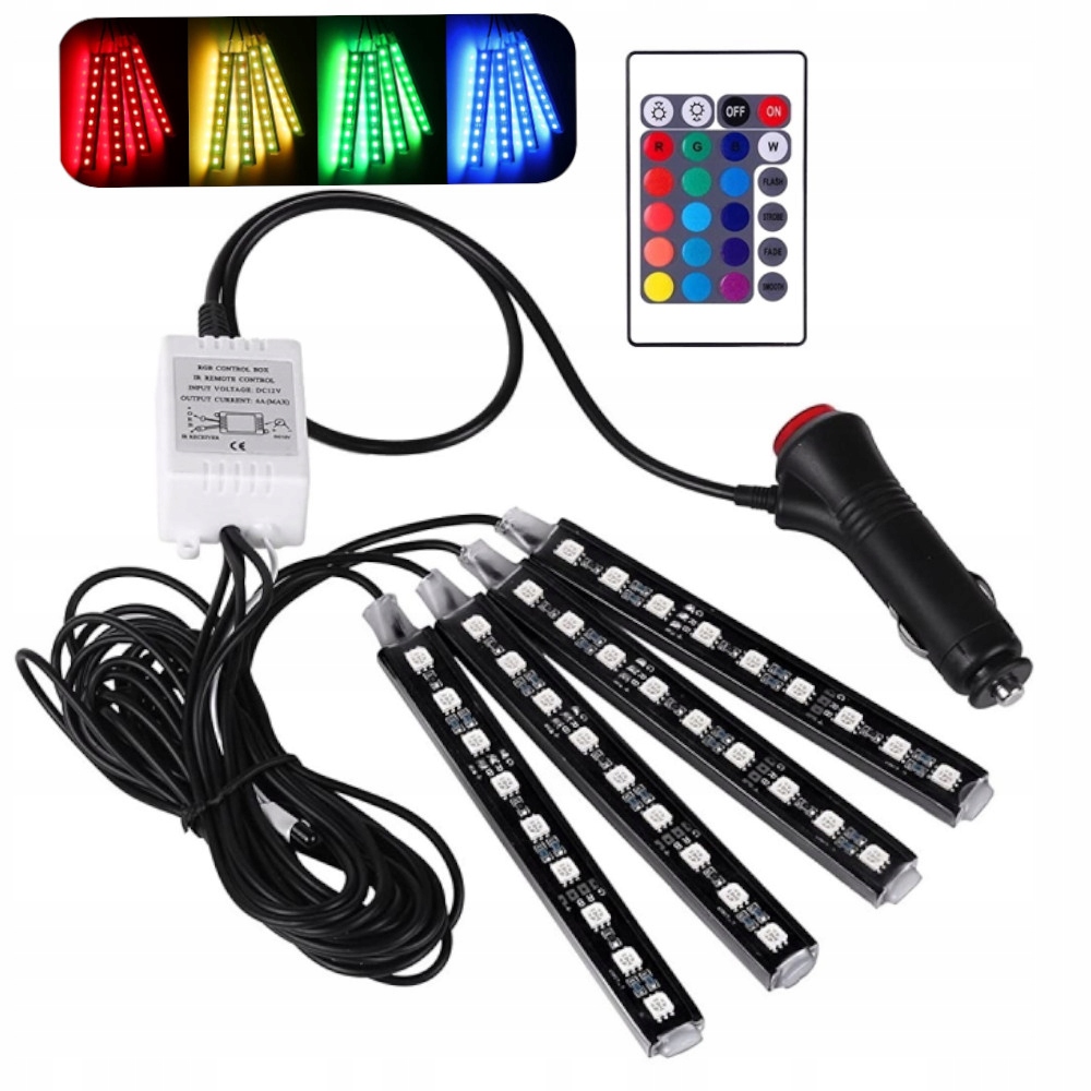 OŚWIETLENIE LED RGB WNĘTRZA AUTA KABINY SAMOCHODU