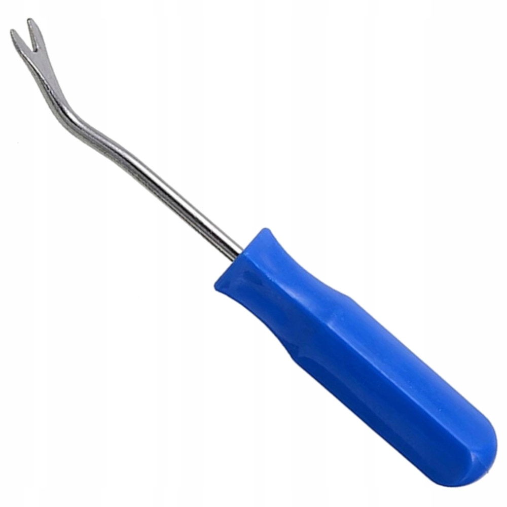 Ściągacz do spinek tapicerki. Służy do szybkiego i bezpiecznego demontażu tapicerki samochodowej, bez ryzyka wyszczerbienia rantów tapicerki podczas jej podważania. Solidny trzpień oraz wygodna rękojeść z tworzywa sztucznego ułatwia pracę.